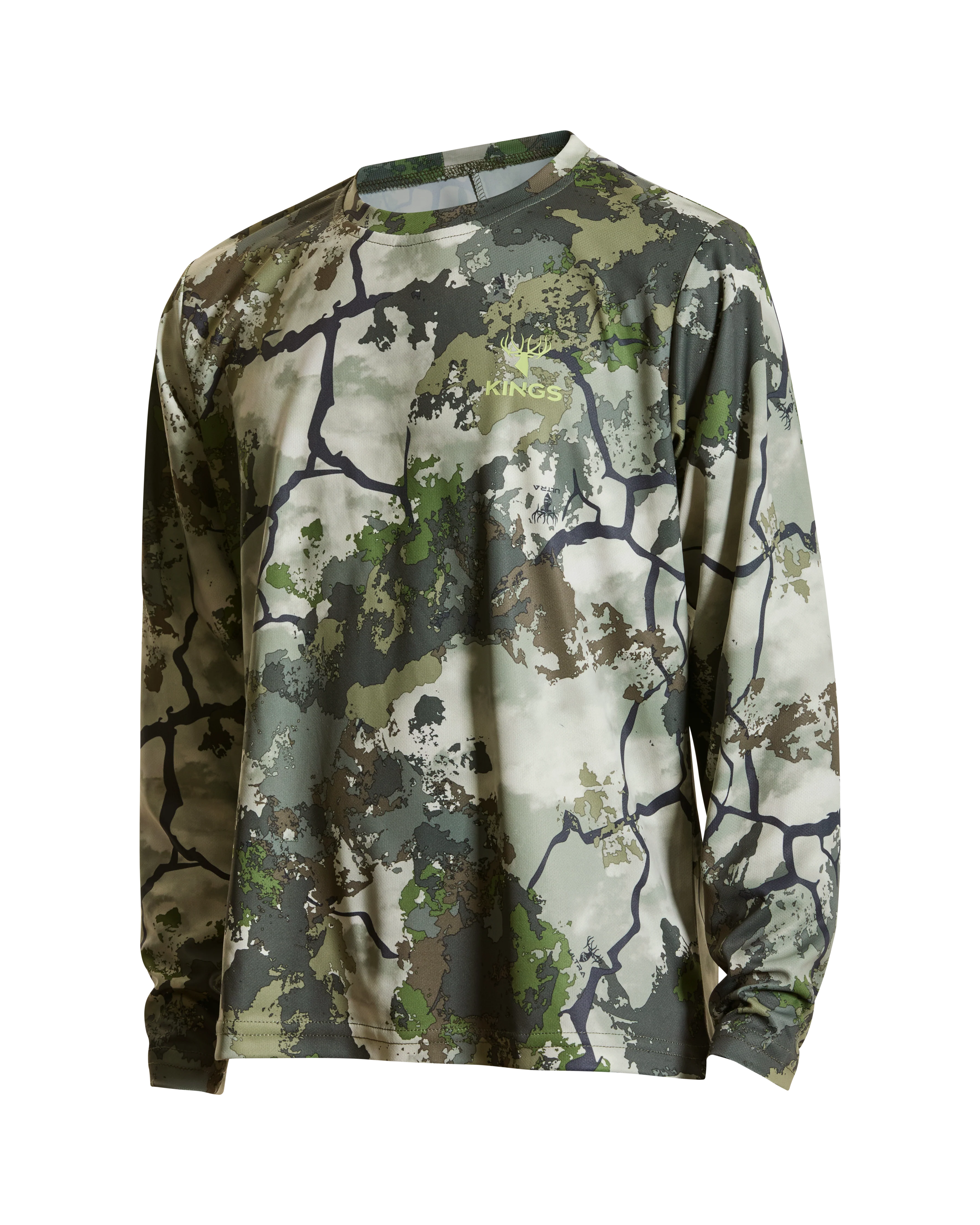 The Kids Hunter Long Sleeve Tee is built for full concealment and protection from sun or cold. A quick-dry, 100% polyester birds-eye mesh fabric enhances its natural wicking properties keeping young hunters dry and comfortable. Perfect for hot early season or a base layer shirt.