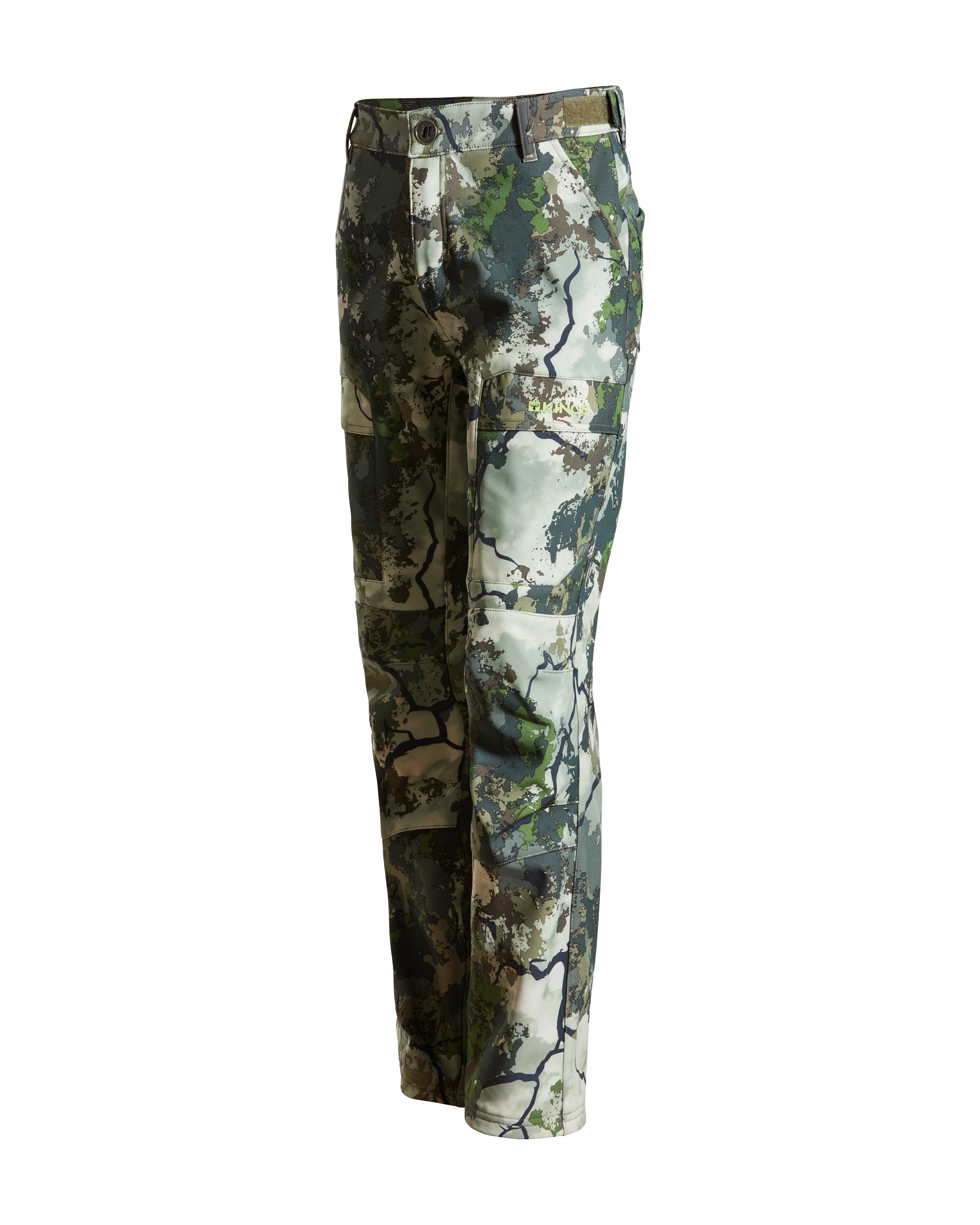 The Kids Rover Soft Shell Pant is a durable and weather resistant layer built for young hunters. Reinforced soft outer shell for tougher conditions, fleece lined for warmth and added water resistant treatment to prevent the breach of moisture entering the inner garment. Two hand pockets, two cargo pockets and two back pockets provide storage options for accessories. This piece is easy to wear for any colder stretches during the hunting season.