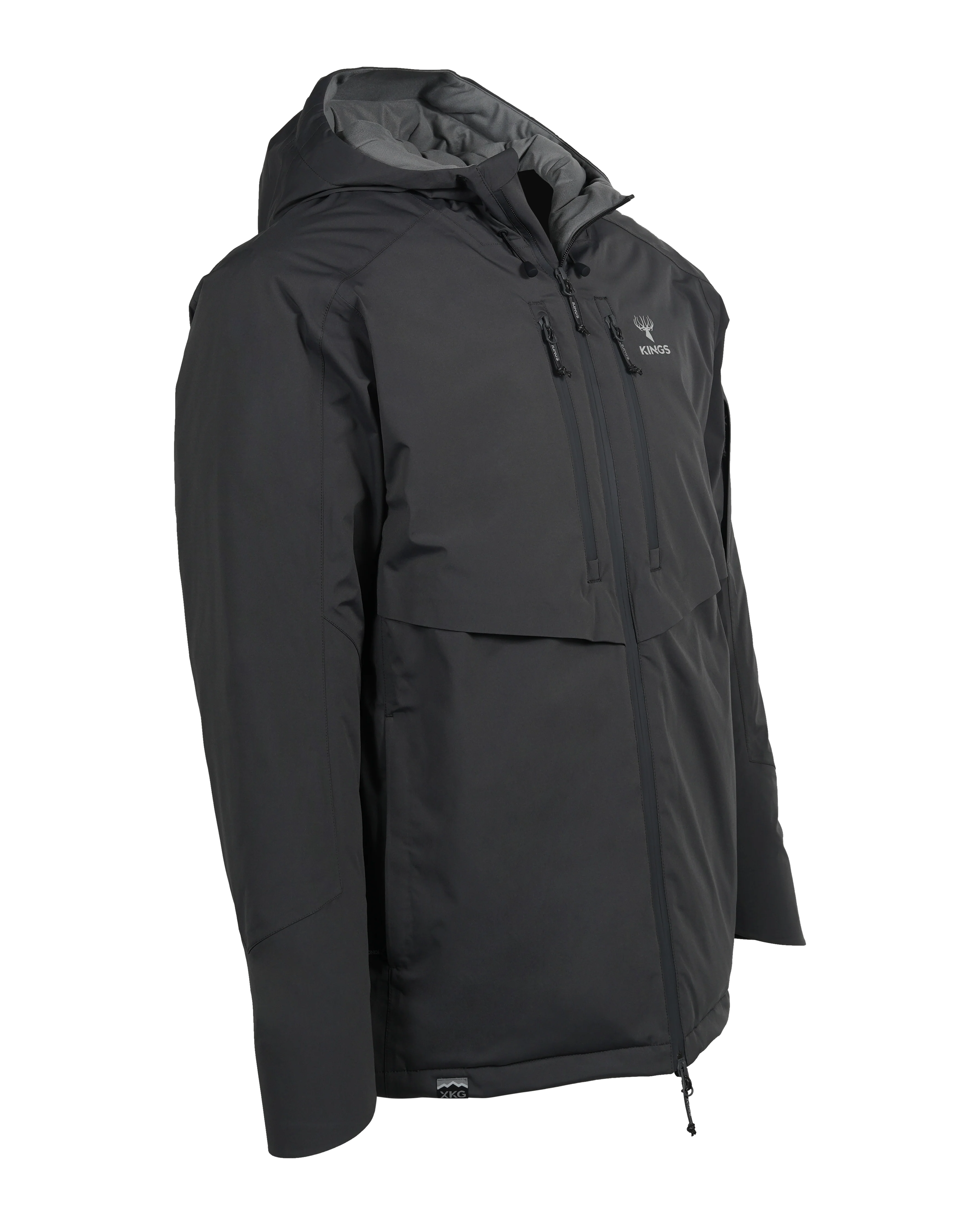 The XKG Expedition Down Jacket is a hard face tri-laminate construction jacket lined with RDS certified down insulation. This jacket has amazing warmth and weather blocking qualities. With extended storm cuffs, insulated hood, water resistant zippers, two side pockets, removable backpack suspenders, and drawstring adjustments, this jacket provides superior warmth and protection for late-season hunts.